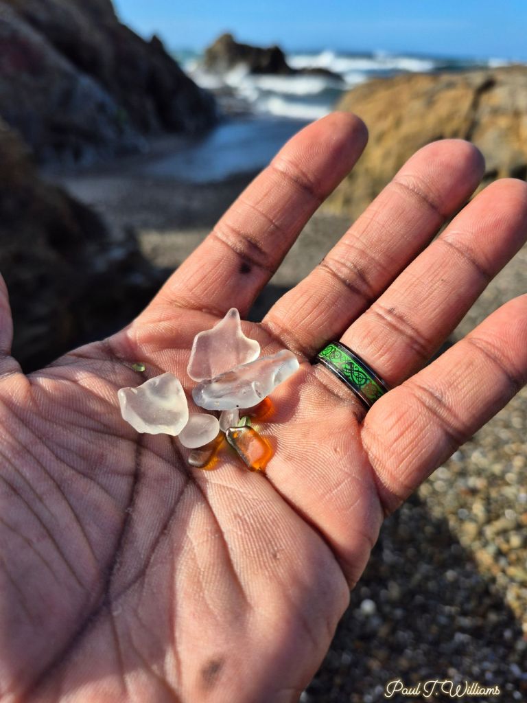 Although the abundance of sea has diminished over time due to people collecting over the years, you can still find numerous small, smooth pieces best at low tide.